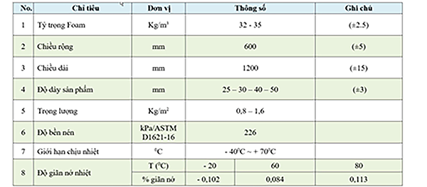 Bảng so sánh chi tiết các thông số kỹ thuật và hiệu quả cách nhiệt của tấm XPS.